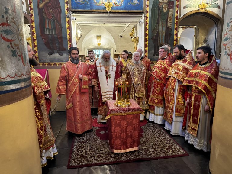 Высокопреосвященному владыке сослужили: настоятель храма епископ Гурий, благочинный Даниловского церковного округа протоиерей Олег Воробьёв, благочинный Донского церковного округа протоиерей Александр Фарковец, духовник южного викариатства протоиерей Константин Харитошкин, настоятель храма Усекновения главы Иоанна Предтечи в Дьякове протоиерей Алексий Моисеев, клирик храма свт. Николая Мирликийского в Бирюлеве иерей Илия Фарковец, и.о. заместителя председателя Синодального миссионерского отдела, настоятель храма святителя Николая Мирликийского в Новой Слободе иерей Антоний Косых, клирики храма иерей Иоанн Дегтярёв, диакон Александр Горлов.
