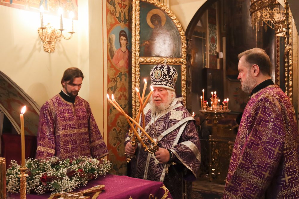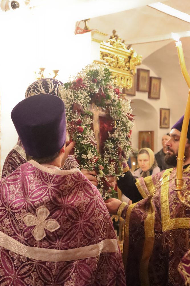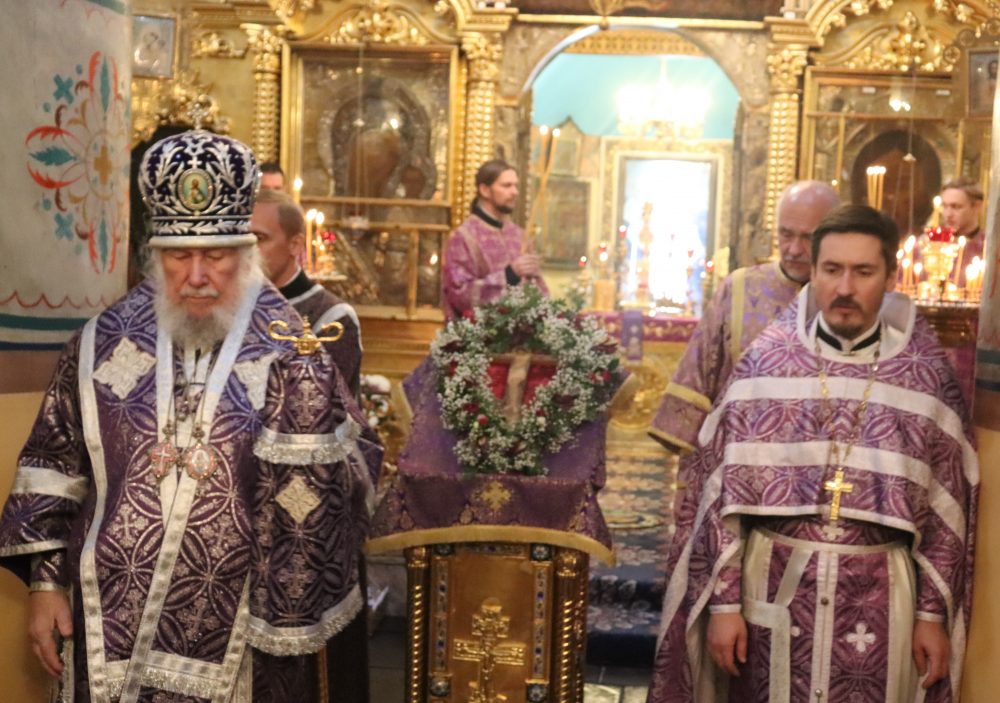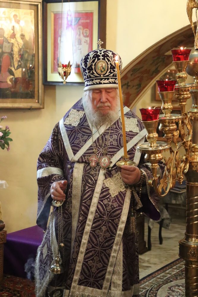 26 сентября 2025 года, в канун праздника Воздвижения Честного и Животворящего Креста Господня, владыка Гурий совершил всенощное бдение в храме Казанской иконы Божией Матери в Коломенском.
